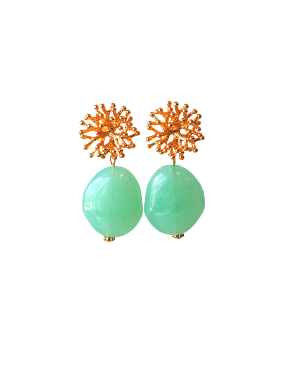 Oorbellen met oorsteker 24K goldplated en hanger groen